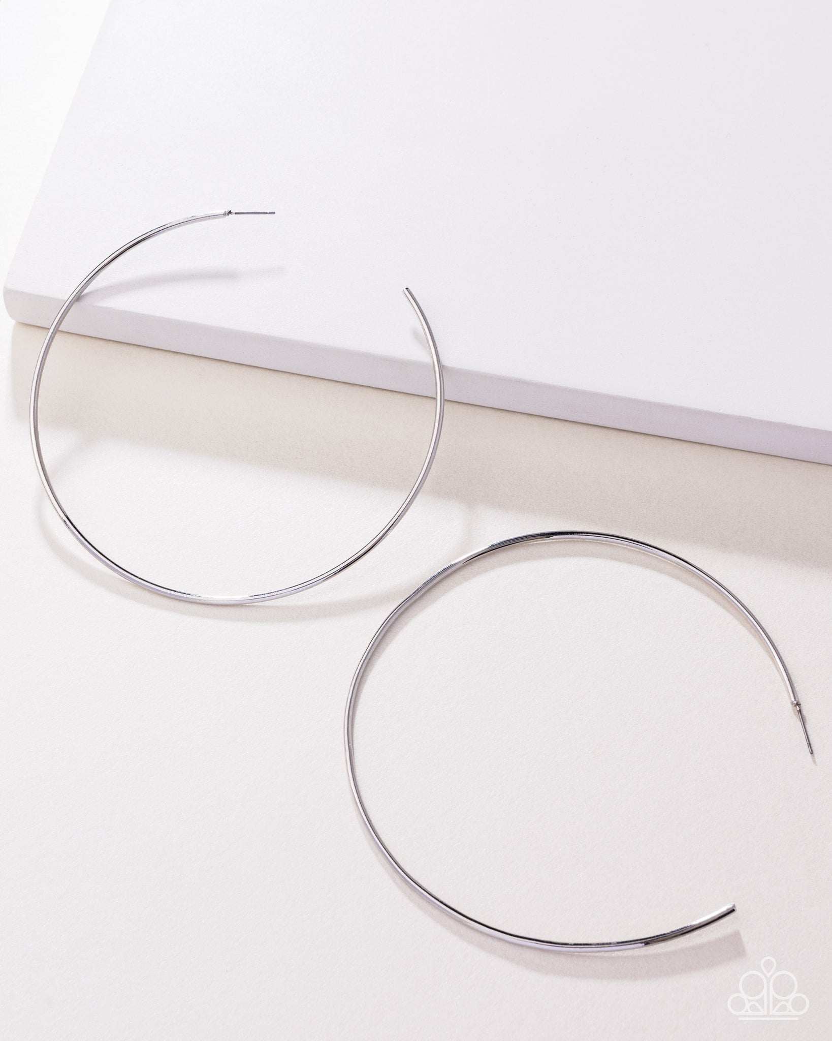 A classic silver bar curls into an outrageously oversized hoop for a trendsetting look. Earring attaches to a standard post fitting. Hoop measures approximately 4" in diameter.