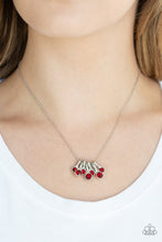 Dotted with dainty red rhinestones, a collection of shimmery silver frames slide along a dainty silver chain below the collar for a timeless look. Features an adjustable clasp closure.